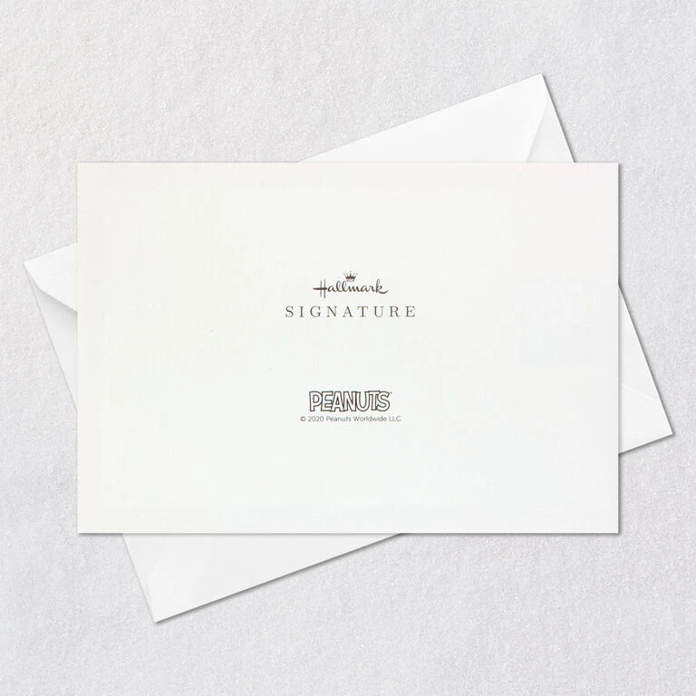 Pop-up Christmas greeting card features Woodstock’s feathered friends dancing around a string of Christmas lights with a “Joy to the World” message on the front. Simply open the card to reveal the 3D pop-up surprise inside—no assembly required: an intricate, laser-cut scene of Snoopy and Woodstock sitting atop Snoopy’s decorated doghouse pops out with sparkling glitter accents. This lovely card crafted from premium card stock is a work of art sure to be displayed all season long. When open, card lays flat for display; 3D pop-up inside measures approx. 5.5″ H.