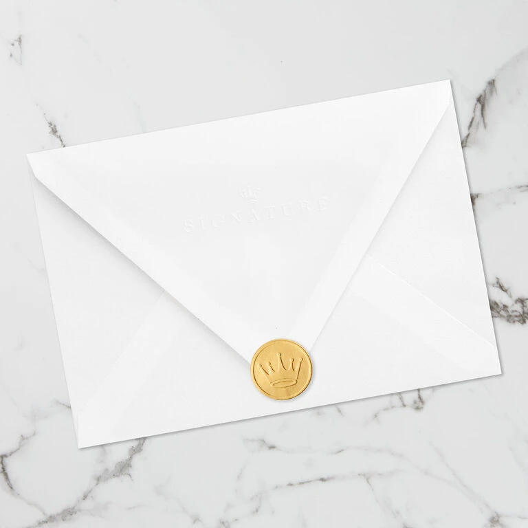 - Includes one card and one lined envelope with a Gold Crown seal. Envelope color may vary.