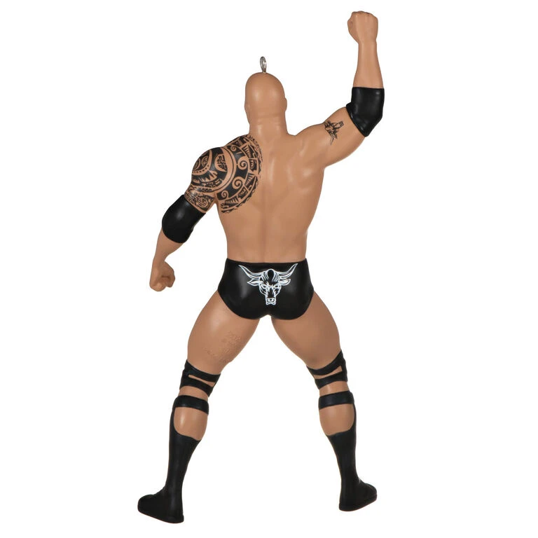 Dominate your holiday decor with this Christmas tree ornament. Fans of WWE wrestling will admire this decoration of Dwayne “The Rock” Johnson in a powerful pose that immortalizes the battle-tested superstar with his charismatic personality and legacy of famous smackdowns.